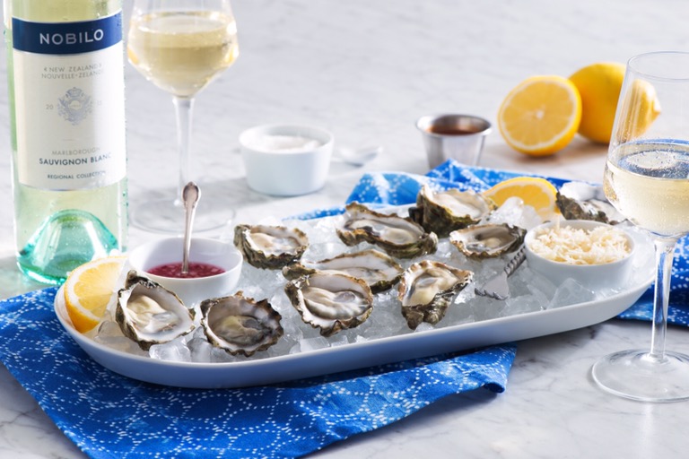 Nobilo Sauvignon Blanc and oysters are the ultimate summer pairing! The crisp citrusy flavours of the wine work superbly with the salty minerality of the oysters.
