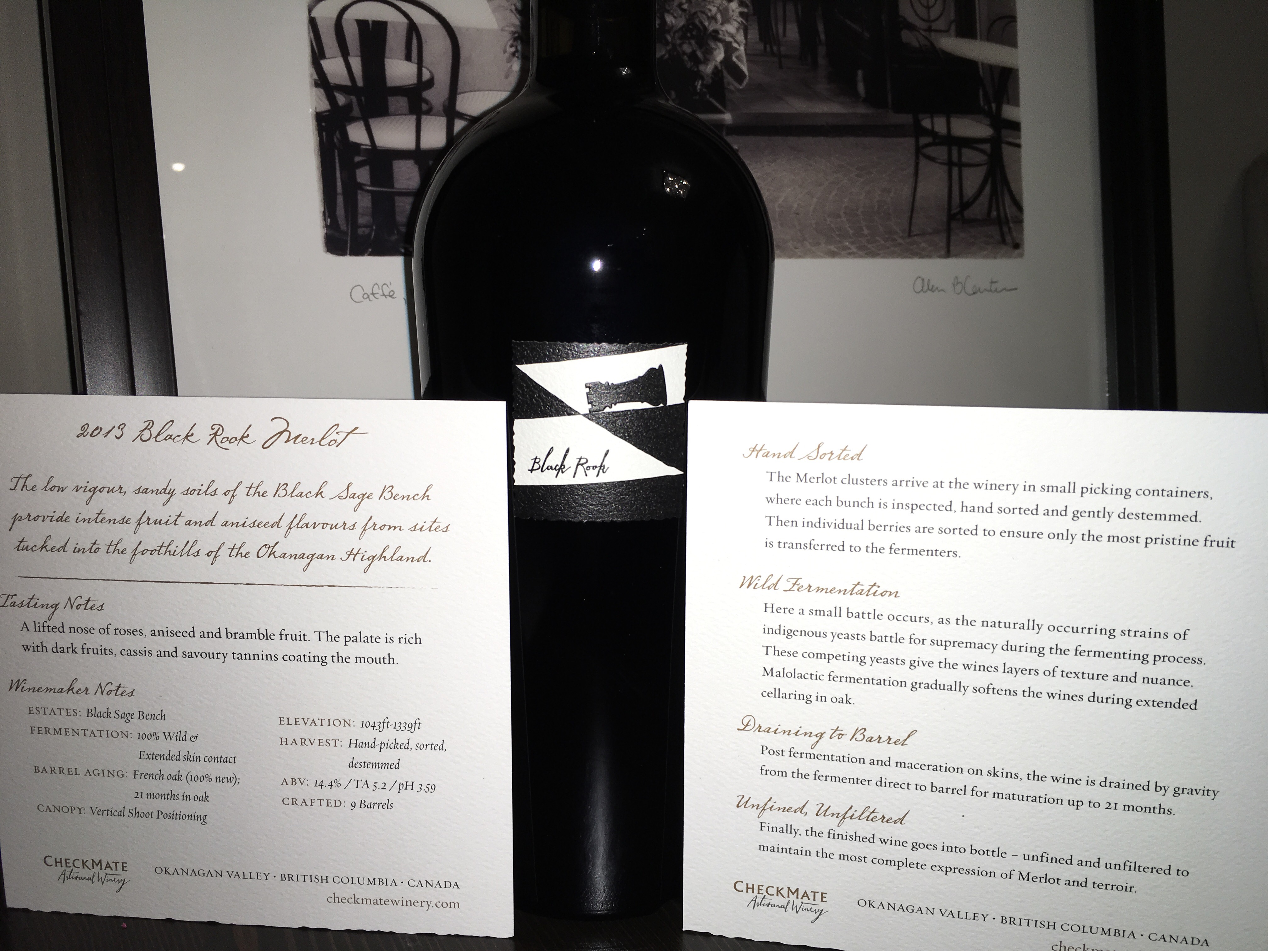 Matt’s review: CheckMate Artisanal Winery produces some of the finest Chardonnay and Merlot in the world from their Golden Mile Bench winery situated in Canada’s wine capital, Oliver, BC. The 2013 Black Rook Merlot is an outstanding expression of ultra premium Okanagan Merlot. Sourced from the Black Sage Bench, Black Rook is a deep ruby colour, the nose is so rich with bramble berry pie notes making the first impression followed by mocha, raspberry, anise, cedar, and a touch of menthol. The aromatic profile seems to combine the finest elements of Napa, Barossa, and Valpolicella, but proudly 100% Okanagan. The palate is remarkably plush whilst also being very refreshing and textured, with layers of delicious dark fruits and sweet spices, all elegantly balanced in this deeply concentrated and robust yet very harmonious wine. It weights in at 14.4% and thanks to its beautifully balanced structure it’s as smooth as silk making it a great wine to enjoy now. Perfectly integrated tannins magically appear on the refreshing finish reminding you just how elegantly structured this magnificent wine is. One of the finest single varietal Merlot wines I’ve tasted. Although drinking beautifully now, this will be absolutely stunning over the next 10+ years as the rich fruit characteristics evolve. Only 9 barrels produced. Enjoy 2017-2030. Tasted bottle 2598 in September 2017. 95 points. Matt Steeves – http://www.quercusvino.ca