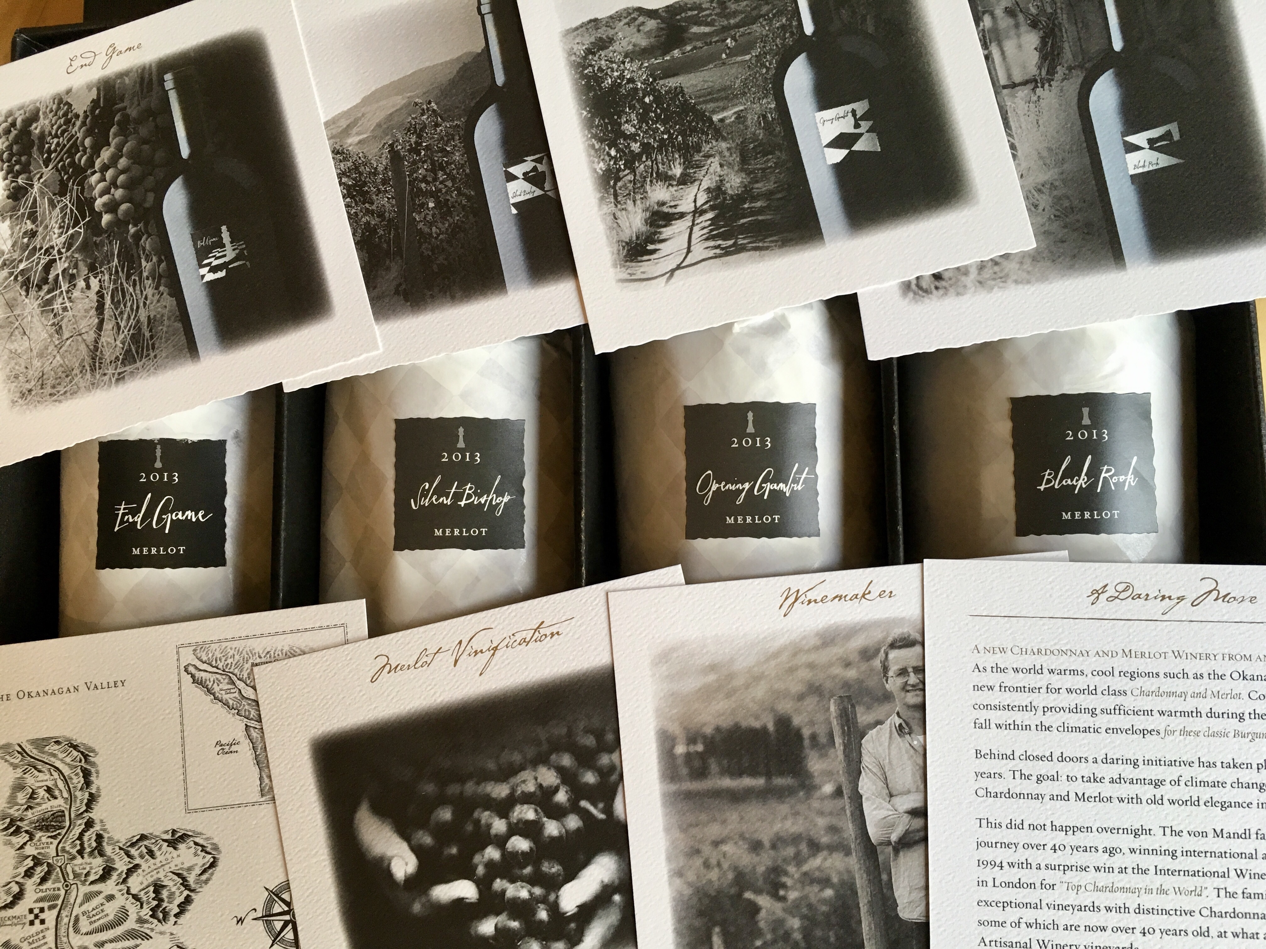 - CheckMate Black Rook Merlot – Okanagan Valley, BC – $85