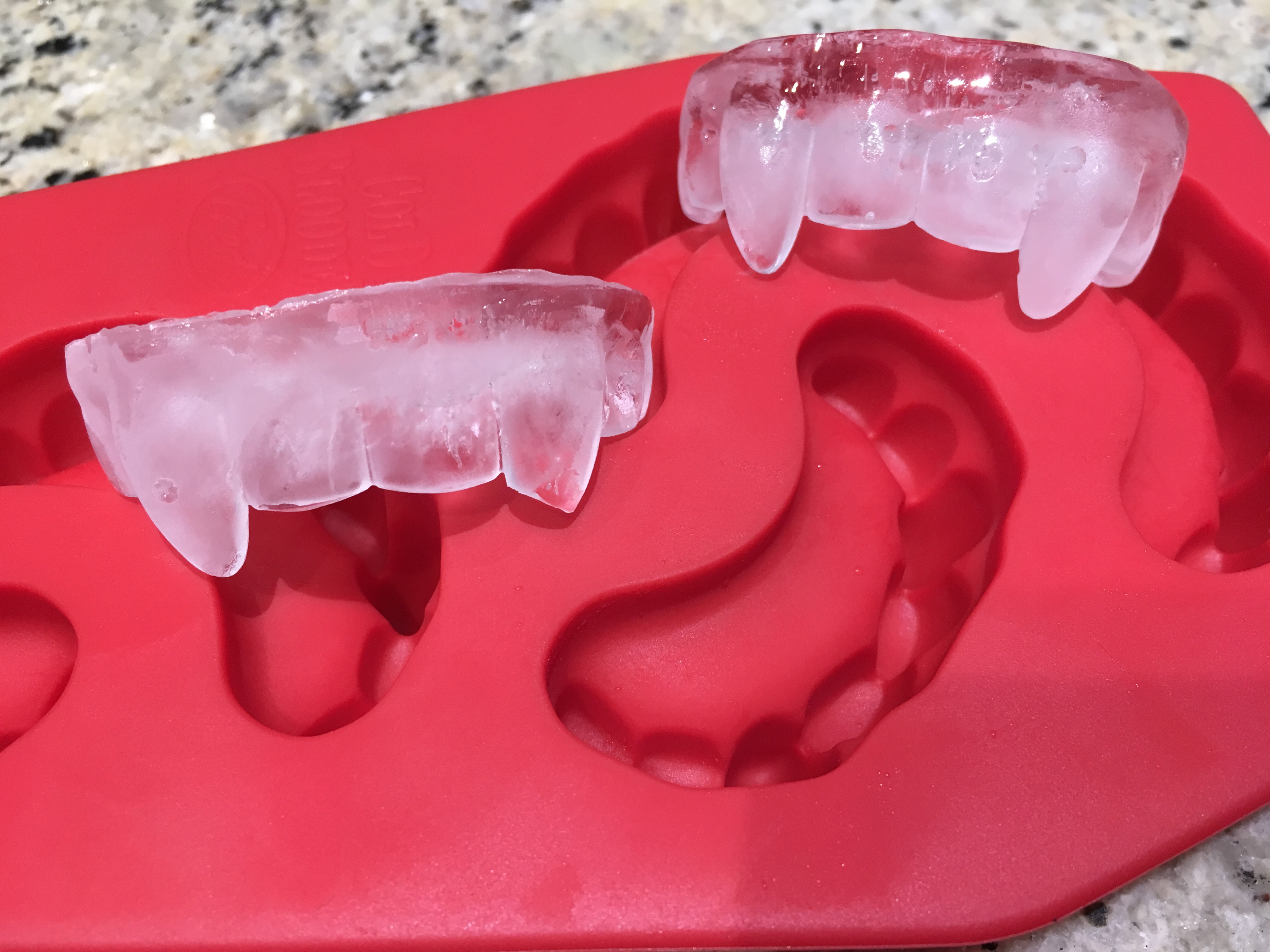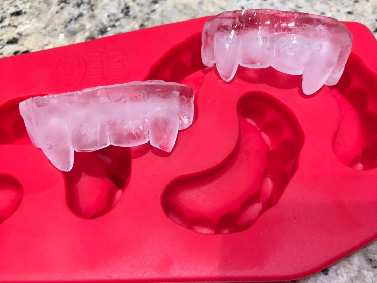 To make it spooky, add some red beet juice or food coloring to the top to make look like drops of vampire blood…and drizzle some strawberry syrup along the rim of the glass to give the impression of blood. Also, try shaking the mixture with ‘blood’ stained (food colouring or beet juice) ice cubes (or ice cube fangs!) for that extra frightening look.