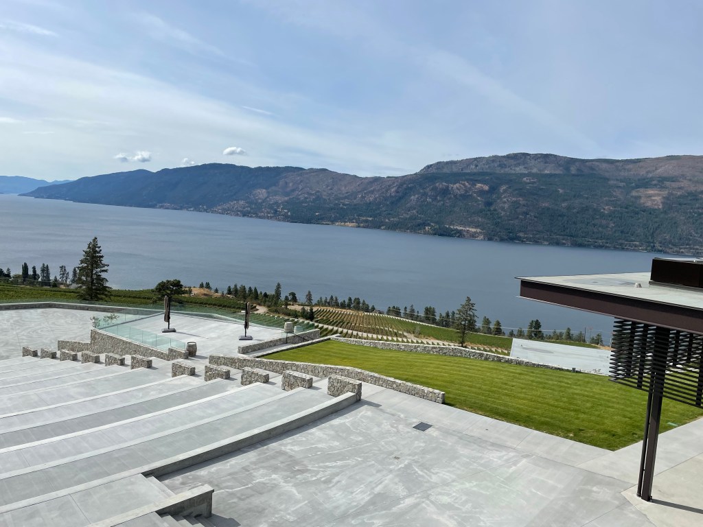 O’Rourke Family Estate winery, dining, event space, and lodging, was designed by renowned San Francisco-based architect Howard Backen. O’Rourke Family Estate is situated high up in Lake Country featuring 300 acres of breathtaking offering views of the vineyards, Okanagan Lake, and hilly lakeside mountains. The property features 110 acres of vines, 300 metres of winding tunnels and 12,000 square feet of caves that provide ideal conditions for storing and aging their wines. One stand our wine is their Twisted Pine Chardonnay that I had the pleasure of tasting when I toured the facilities in fall 2022.