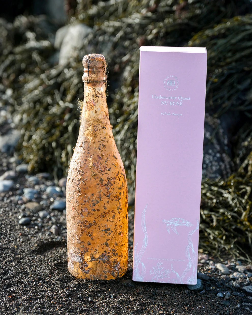 Earlier this year, Benjamin Bridge submerged several cages of their non-vintage Brut Rosé—a precise and exceptional traditional-method sparkling crafted from Chardonnay and Pinot Noir—off Nova Scotia’s rugged Eastern Shore. Months spent beneath shifting tides and among vibrant marine life led to the bottles resurfacing intact, naturally adorned by the sea and enriched by their underwater journey.