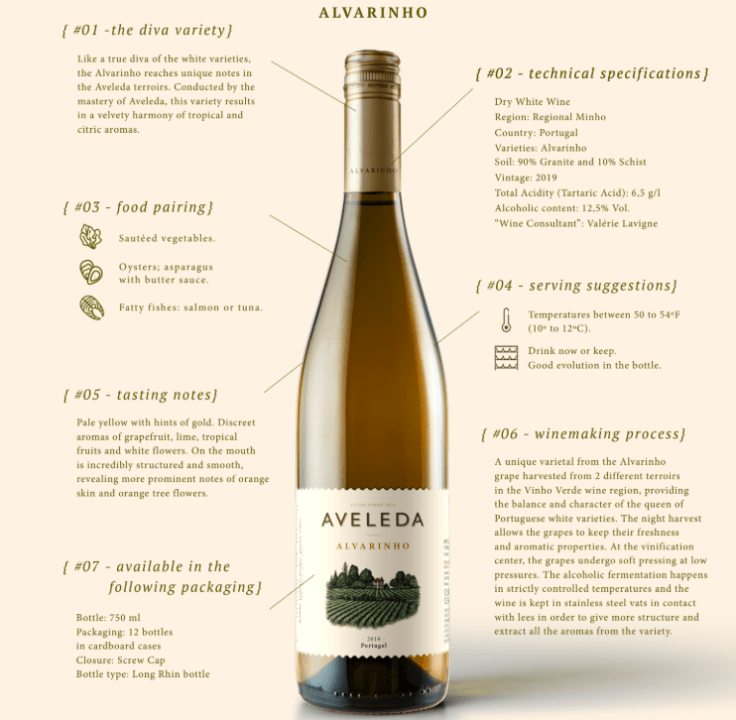 Clear and citrine in color with golden hints. | Aroma: Intense and balanced aroma with delicate notes of grapefruit, orange leaf and white flowers. | Taste: With balanced acidity, combining elegance and freshness, it ends with a firm and persistent finish. Notes of white fruit, orange peel, pineapple and orange blossom.
