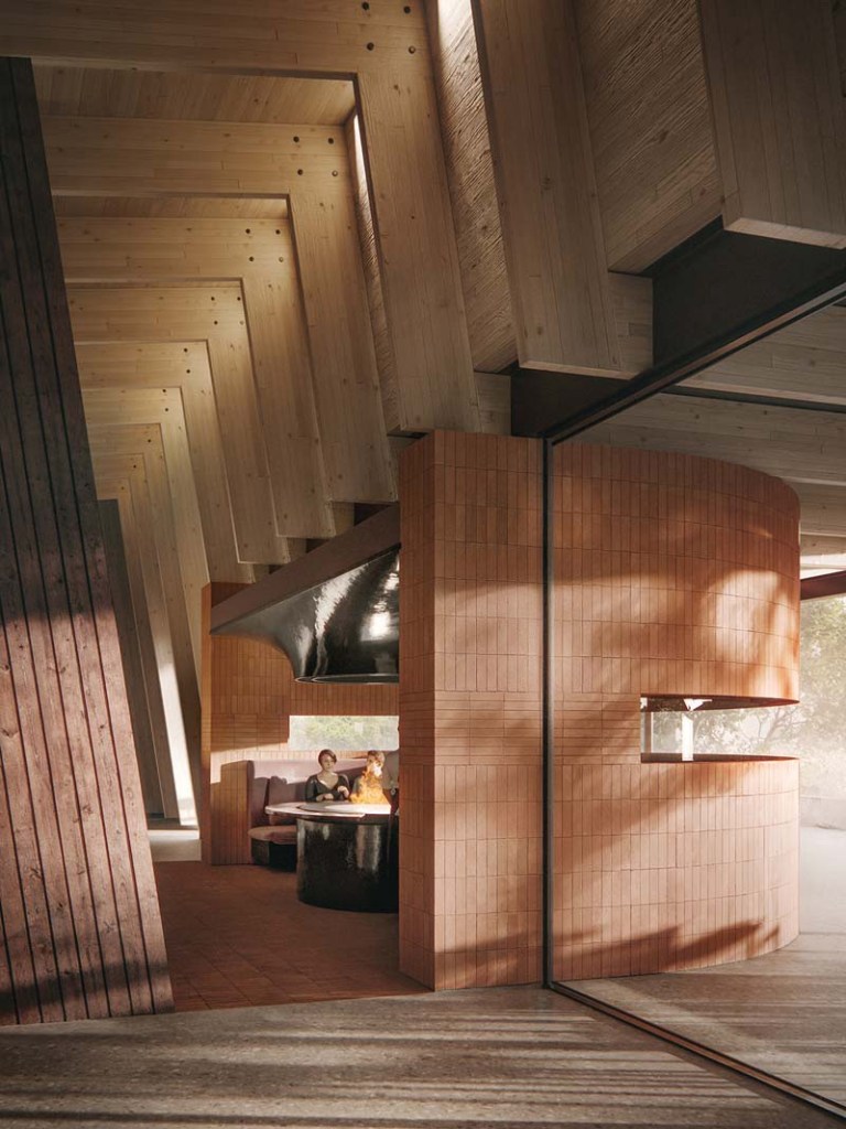 Some aspects of the design thoughtfully allude to the cultural traditions of northern Italy’s Friuli-Venezia Giulia (FVG) region — the owners’ ancestral home. Having visited Collio multiple times, where these architectural and culinary features remain central to family dwellings and traditional restaurants, the reference feels both authentic and meaningful. In particular, the freestanding fogolar — the traditional terracotta cooking fireplace positioned within the restaurant alcove — evokes the historic gathering heart of Friulian homes, reinforcing a strong sense of place and heritage. In this way, the project creates a compelling cultural bridge between Prince Edward County and one of Italy’s most respected wine regions. The design team appears to have achieved its stated objective of creating architecture that “will reflect the wine in its quiet grandness and unexpected beauty while embracing and warming the palate,” while simultaneously honouring the family’s roots in Friuli-Venezia Giulia.